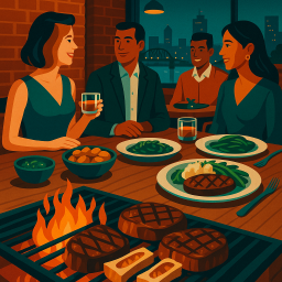 * Jetzt kann Peter das Abendessen mit seinen Freunden im Repeal Oak Fired Steakhouse Louisville genießen!