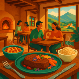 * Jetzt kann Peter das Abendessen mit seinen Freunden im Restaurante Mugaritz El Torno genießen!