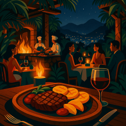 * Jetzt kann Peter das Abendessen mit seinen Freunden im Rúnico Medellín genießen!