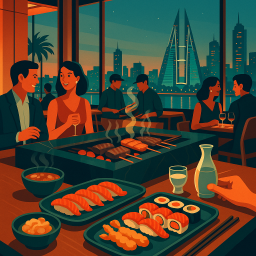 * Jetzt kann Peter das Abendessen mit seinen Freunden im Roka Bahrain Manama genießen!