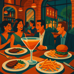 * Jetzt kann Peter das Abendessen mit seinen Freunden im Scoundrel Greenville genießen!