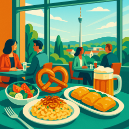 * Jetzt kann Peter das Abendessen mit seinen Freunden im Stuttgart TV Tower genießen!