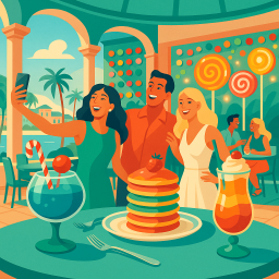 * Jetzt kann Peter das Abendessen mit seinen Freunden im Sugar Factory Nassau genießen!