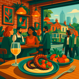 * Jetzt kann Peter das Abendessen mit seinen Freunden im The 86 Fitzroy genießen!