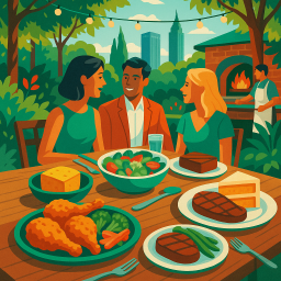 * Jetzt kann Peter das Abendessen mit seinen Freunden im THE CHASTAIN - Restaurant Atlanta genießen!