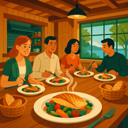 * Jetzt kann Peter das Abendessen mit seinen Freunden im The Cooks’ House Traverse City genießen!