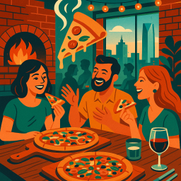 * Jetzt kann Peter das Abendessen mit seinen Freunden im The Hall's Pizza Kitchen Oklahoma City genießen!
