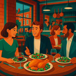 * Jetzt kann Peter das Abendessen mit seinen Freunden im The Hart - Marylebone London genießen!