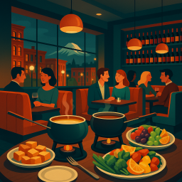 * Jetzt kann Peter das Abendessen mit seinen Freunden im The Melting Pot - Tacoma genießen!
