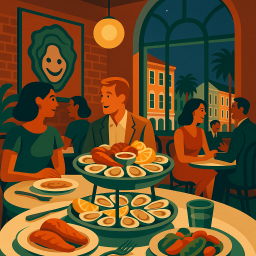 * Jetzt kann Peter das Abendessen mit seinen Freunden im The Ordinary Charleston genießen!
