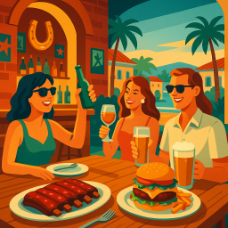 * Jetzt kann Peter das Abendessen mit seinen Freunden im The Roadhouse Salou genießen!