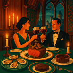 * Jetzt kann Peter das Abendessen mit seinen Freunden im The Witchery Edinburgh genießen!