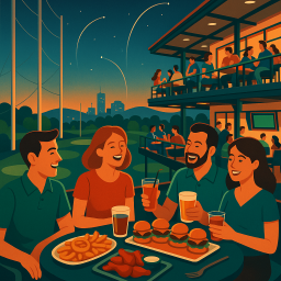 * Jetzt kann Peter das Abendessen mit seinen Freunden im Topgolf Louisville genießen!