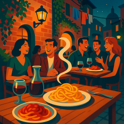 * Jetzt kann Peter das Abendessen mit seinen Freunden im Trattoria Da Enzo al 29 Roma genießen!
