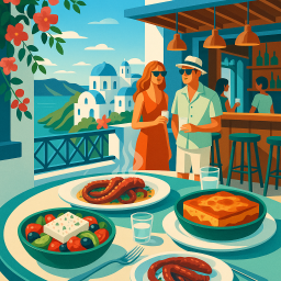 * MaternalRecord73 nutzt nun seine Kontakte im Triana Tavern Thira, um den Tisch zu sichern.