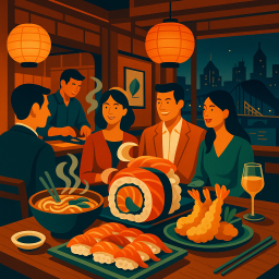 * Jetzt kann Peter das Abendessen mit seinen Freunden im Umami Pittsburgh genießen!