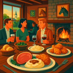 * Jetzt kann Peter das Abendessen mit seinen Freunden im White Horse Inn Metamora genießen!