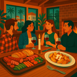 * Jetzt kann Peter das Abendessen mit seinen Freunden im Wolf In The Woods San Diego genießen!