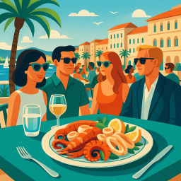 * Jetzt kann Peter das Abendessen mit seinen Freunden im ZOI Split genießen!