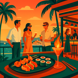 * Jetzt kann Peter das Abendessen mit seinen Freunden im Zuma Ibiza Eivissa genießen!